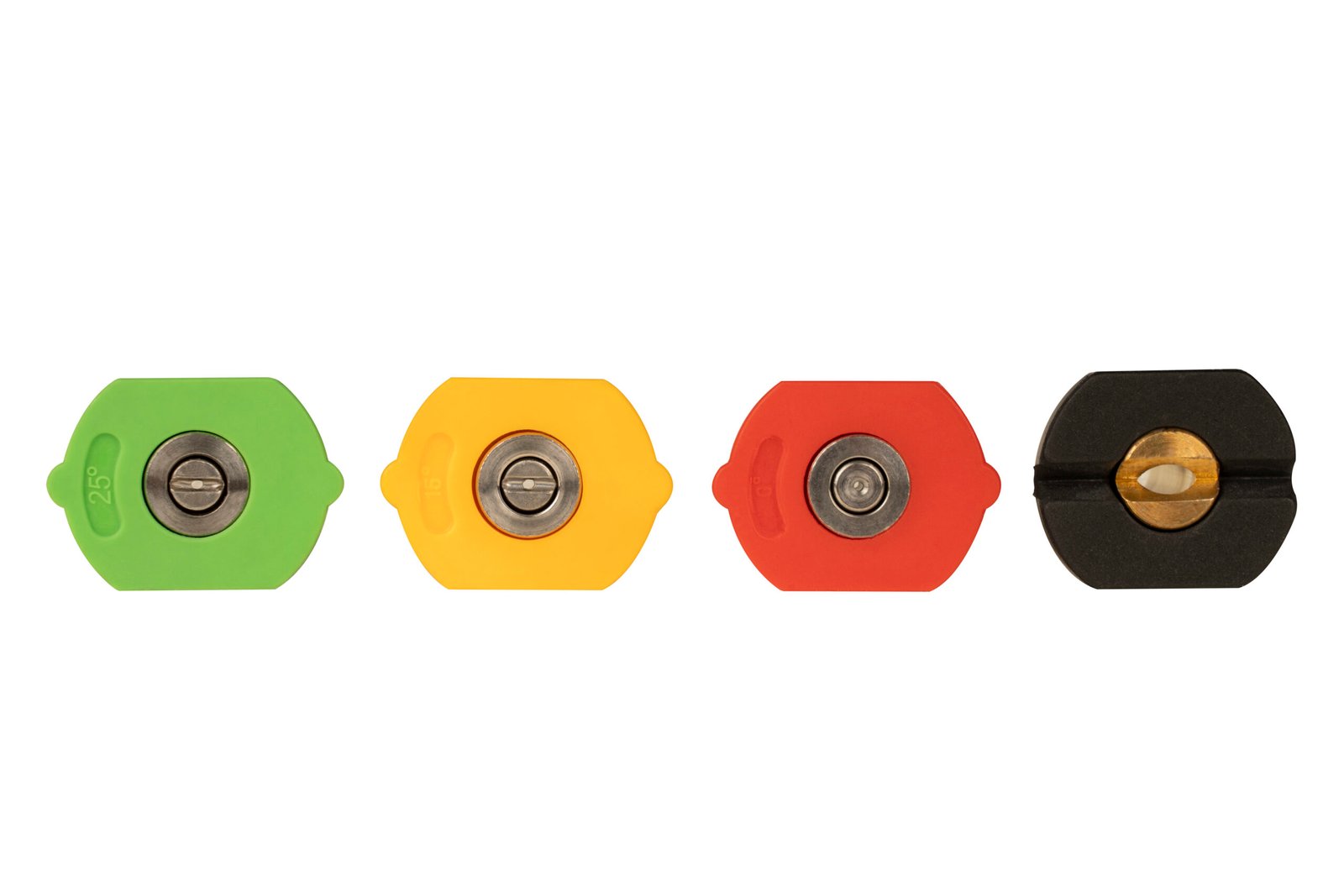 • نازل ۲۵ درجه – سبز: دارای الگوی اسپری ۲۵ درجه که قابلیت شستشوی عمیق سطوح بزرگتر را دارد. از این نازل فقط برای سطوحی که تحمل فشار آن را دارد استفاده کنید.